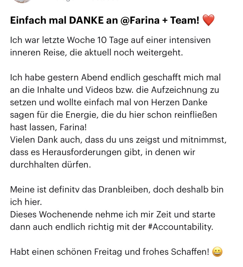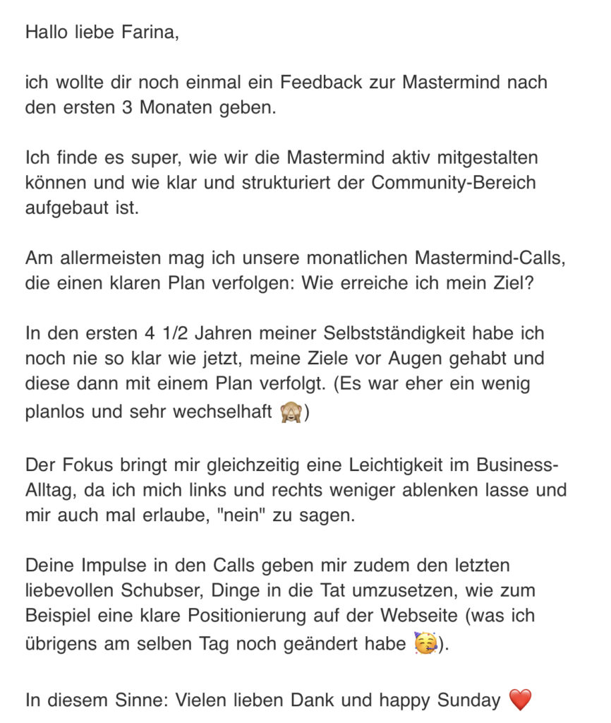 Das sagen die Teilnehmerinnen aus unserer Mastermind und Mentoring Programm zur Arbeit mit uns: